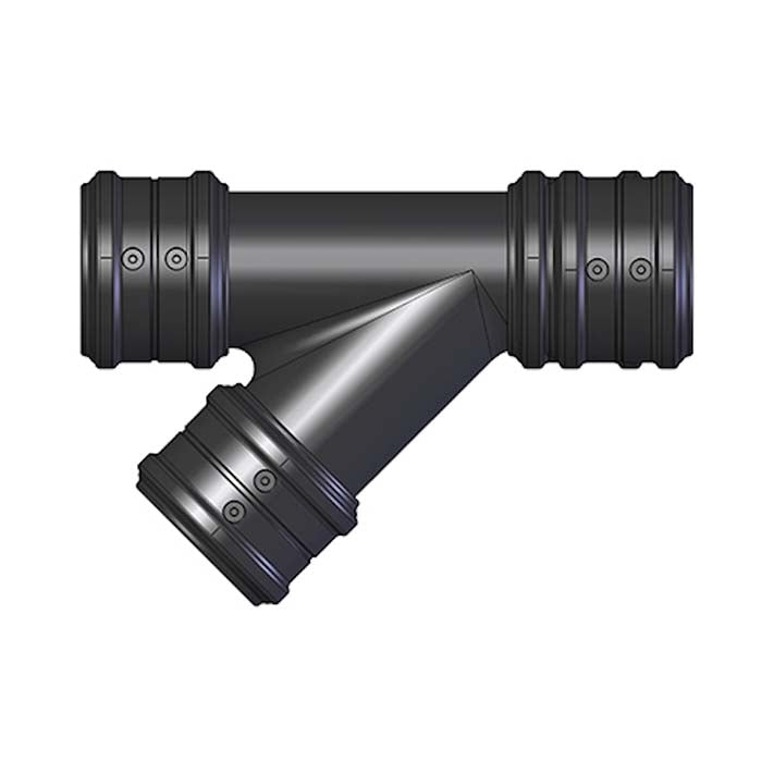 Opdag vores 3-vejs kobling med en praktisk 45-graders gren, ideel til effektiv rørføring. Denne kobling har tre åbninger med en diameter på 75 mm, hvilket sikrer en optimal forbindelse mellem dine rør.
