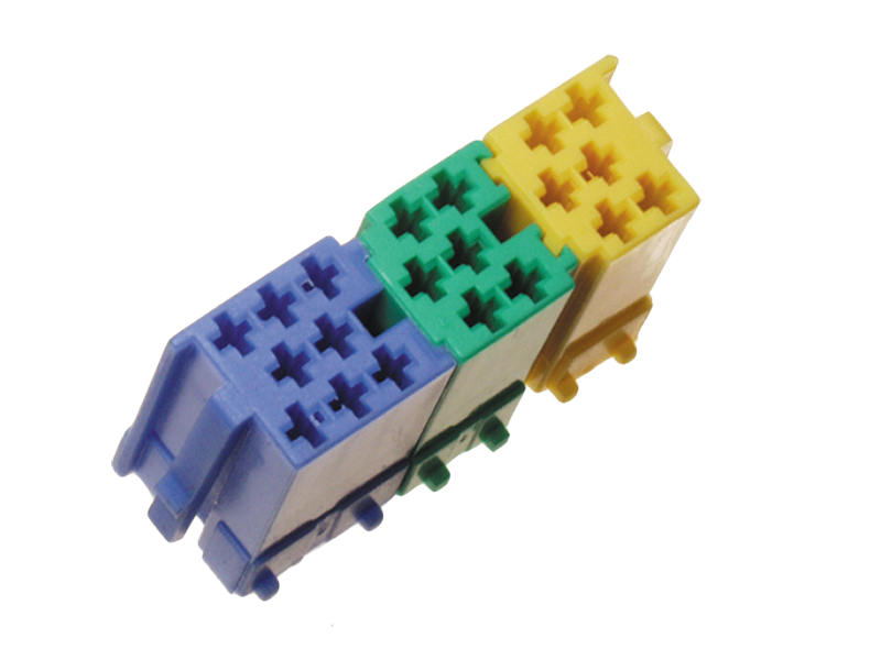 - 3 Mini-ISO stik i farverne blå, grøn og gul