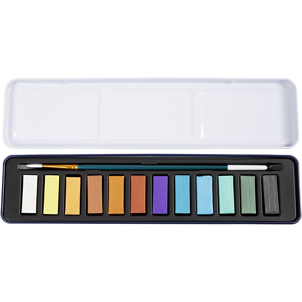 Akvarelsæt, metallicfarver, 12 frv./ 1 pk.