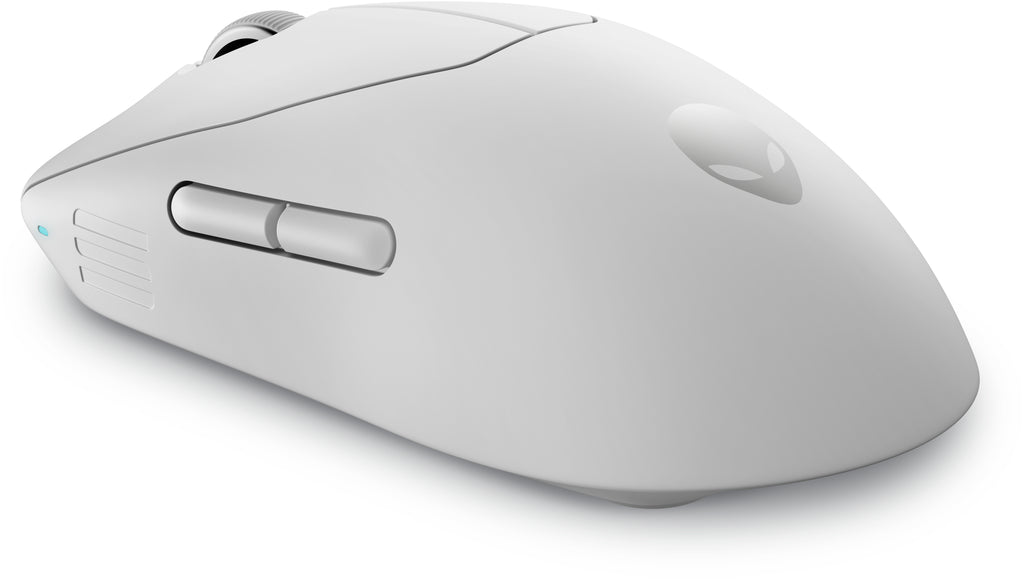 Alienware Pro Wireless Gaming Mouse. Formfaktor: Ambidextrous. Bevægelsesdetekteringsteknologi: Optisk, Enhedsgrænseflade: RF Wireless + USB Type-C, Bevægelsesopløsning: 26000 dpi, Responstid: 0,25 ms, Antal knapper: 6, Rulle type: Hjul, Acceleration (maks.): 50 G. Strømkilde: Batterier. Produktfarve: Hvid
