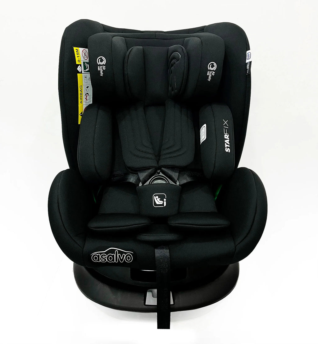 Asalvo Star Fix, Sort er en autostol i gruppe 0/1/2/3 til børn fra 0 måneder til 36 kg.
