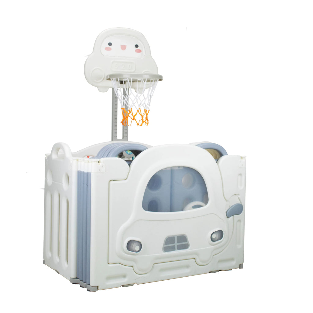 Den er forsynet med mange detaljer og et lille basketball net og en bold.