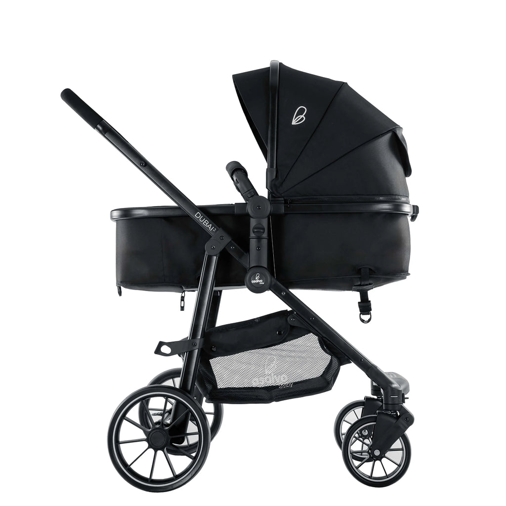 Sæt bestående af en autostol Gruppe 0+ og en klapvogn med et klapvognssæde, der kan omdannes til barnevognslift og en fodpose. Alt i et!