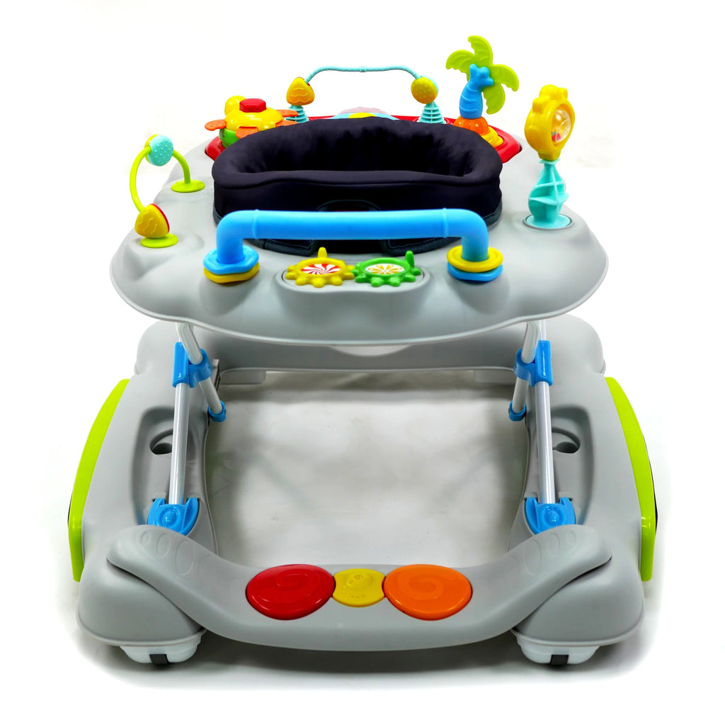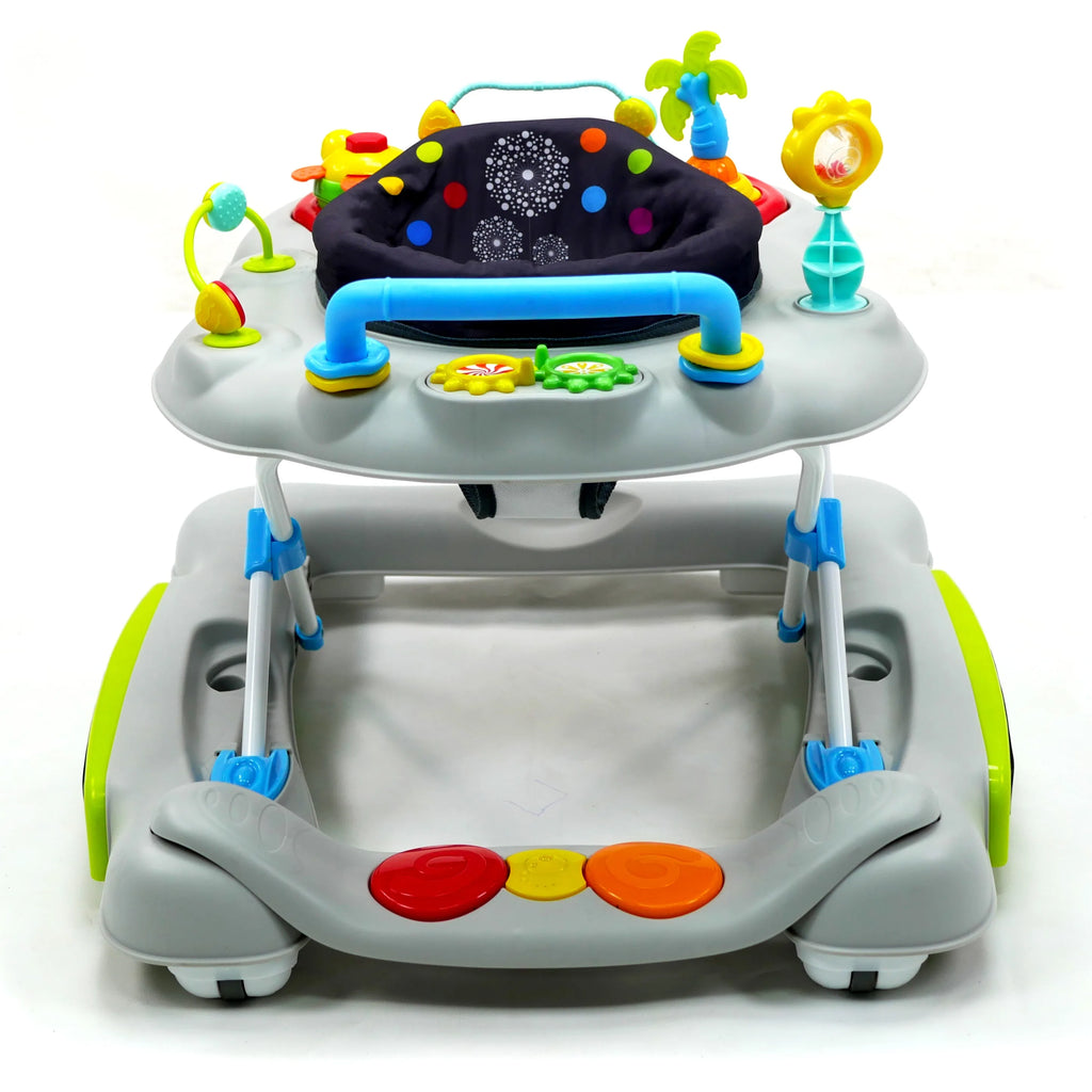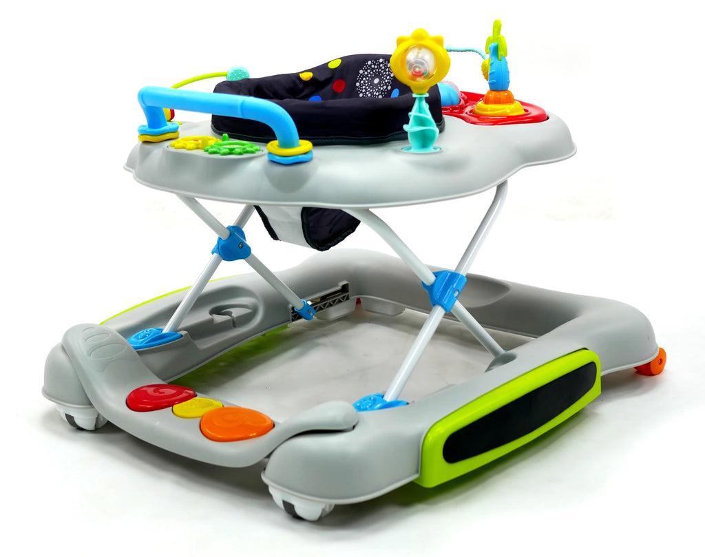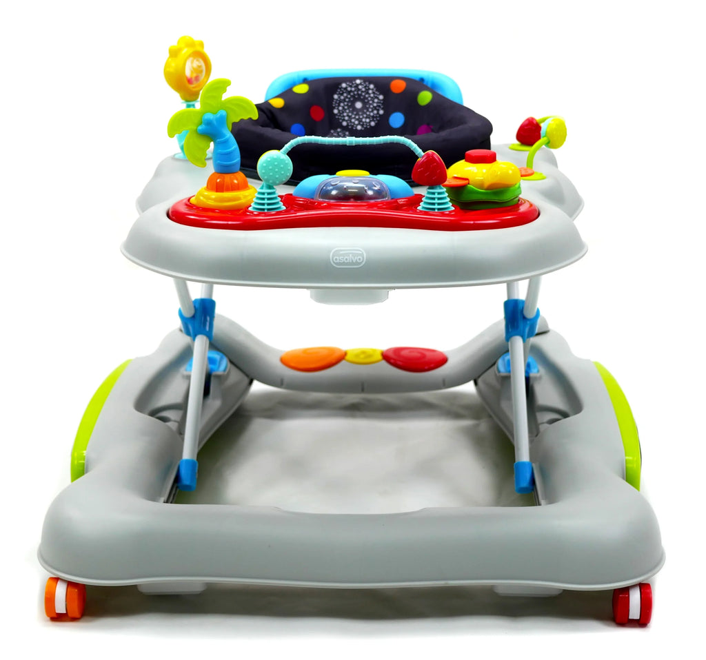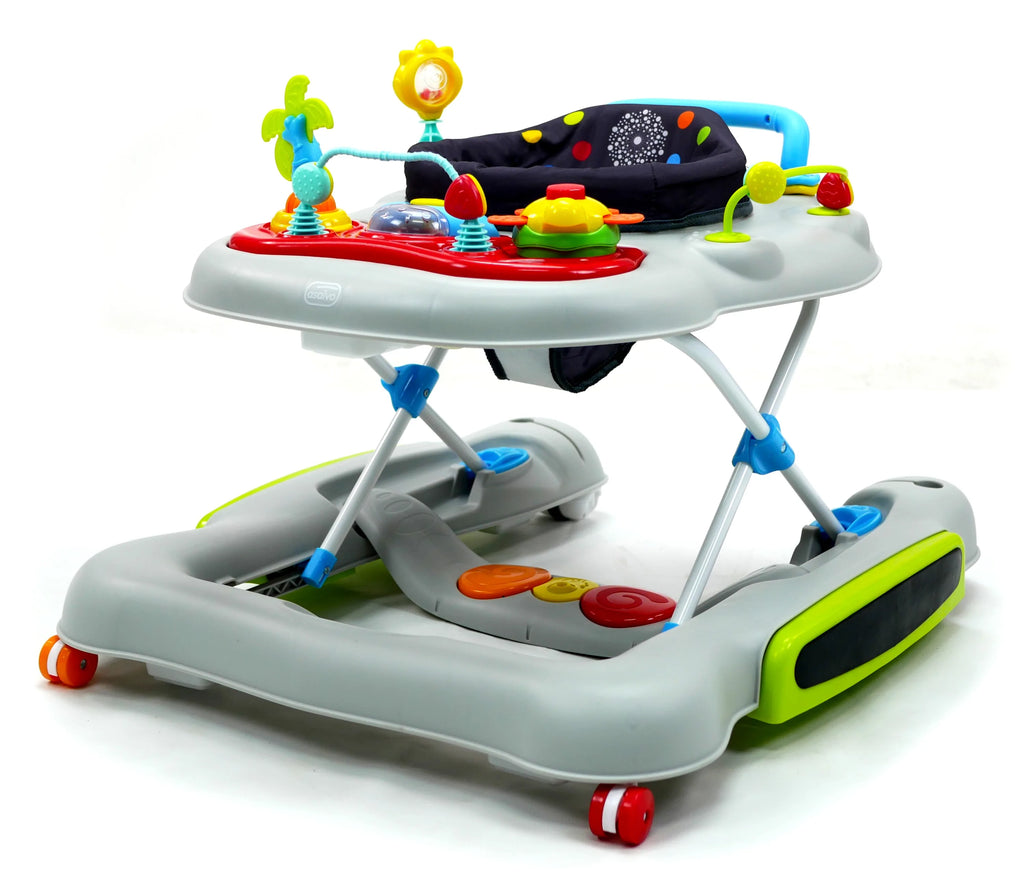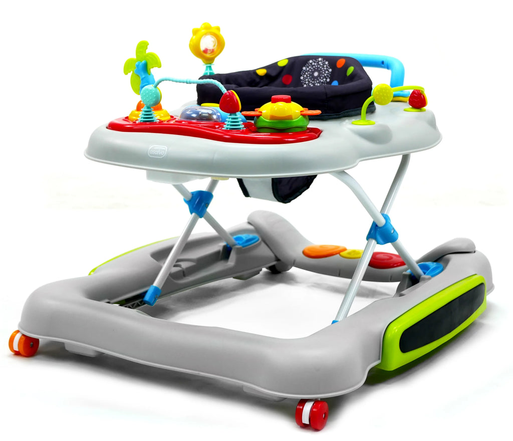 Gåstolens sæde kan rotere 360 grader rundt og den er justerbar i 3 højder, så den kan vokse med barnet.