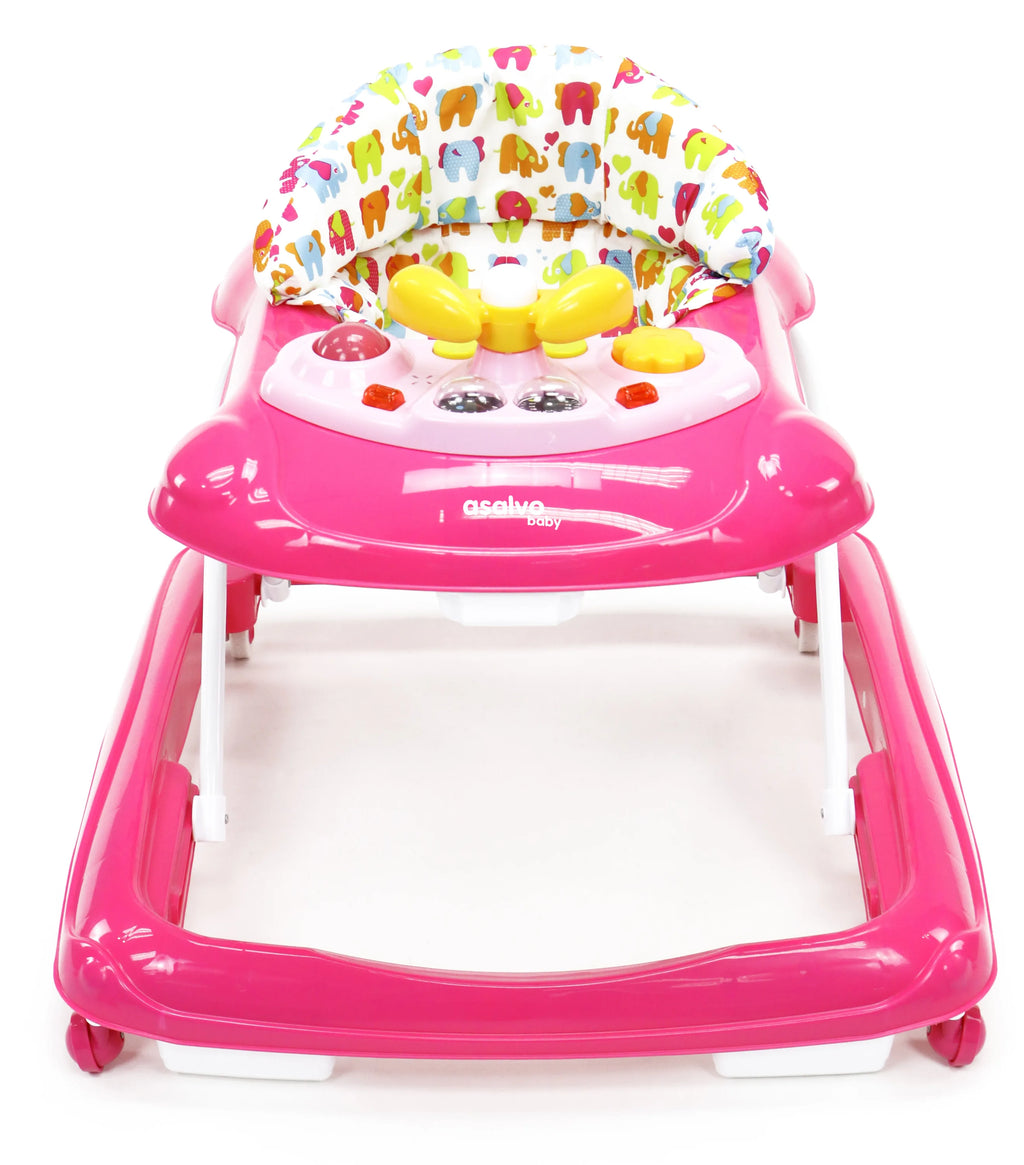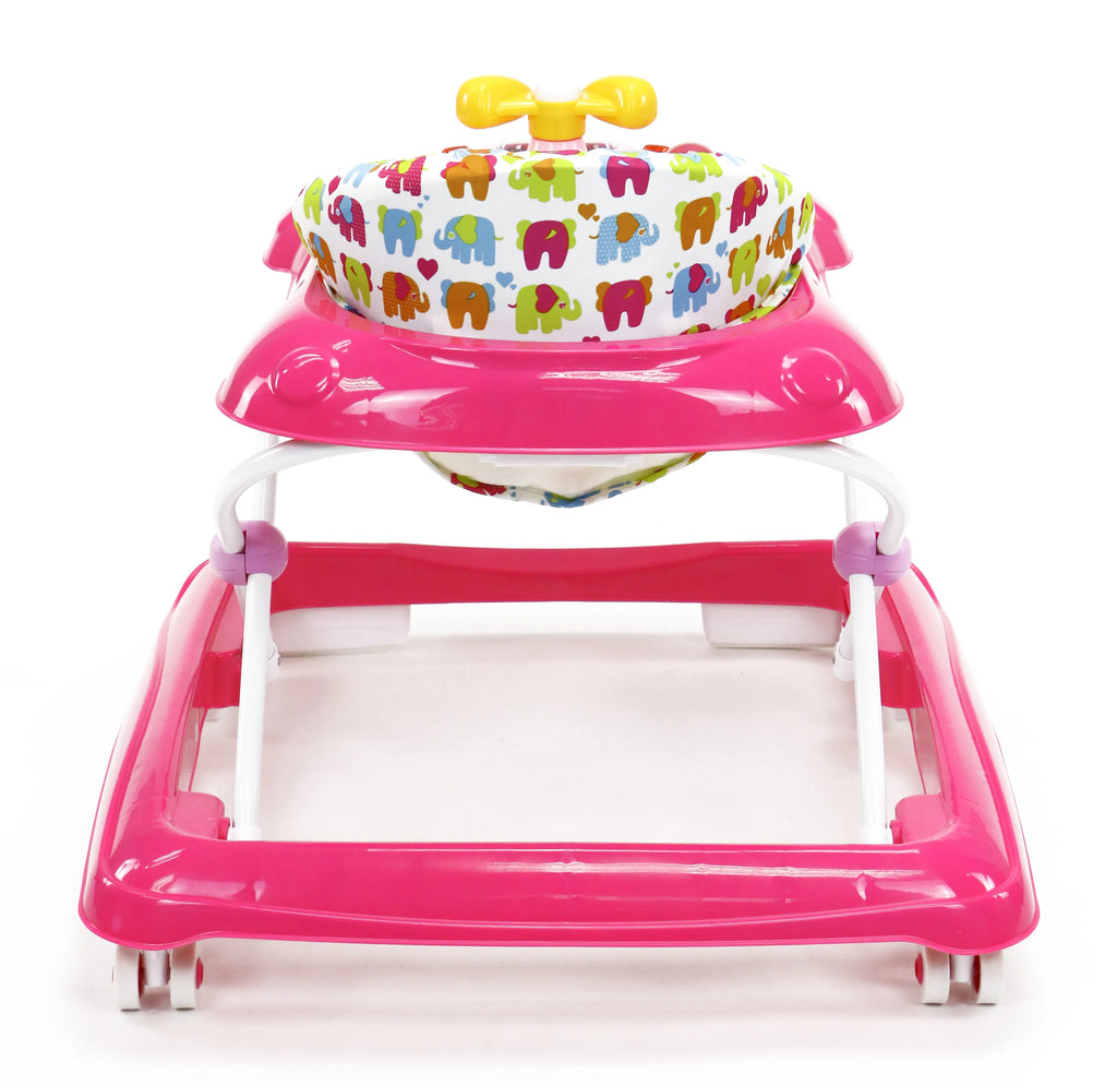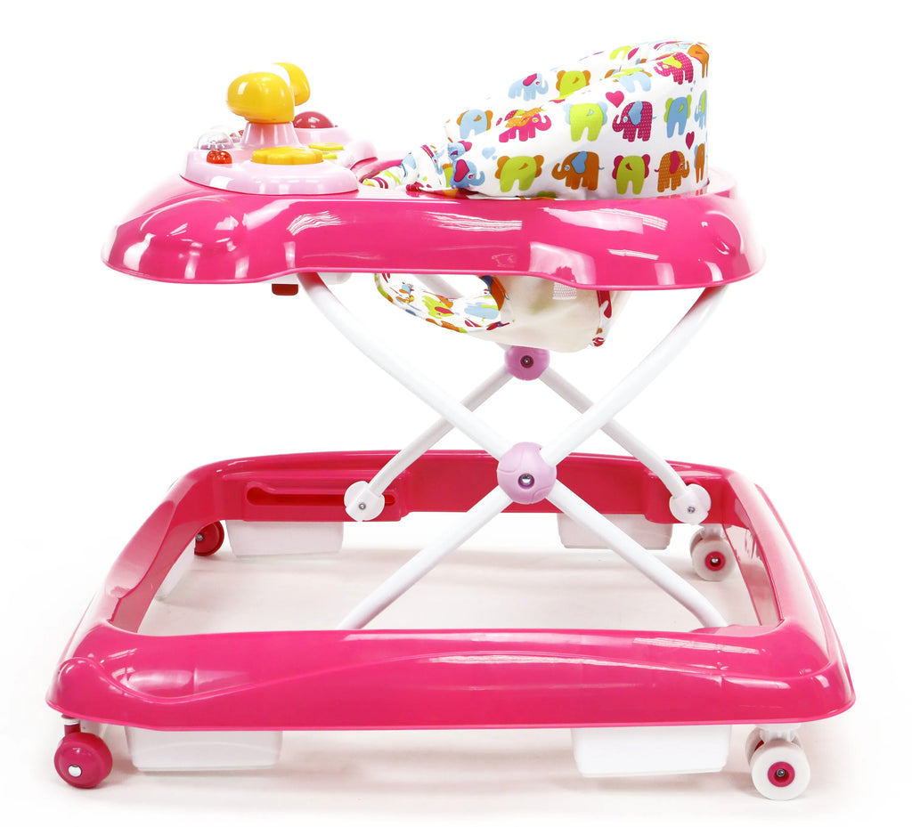 Gåstol med vaskbart polstret sæde og med fine pink elefanter.