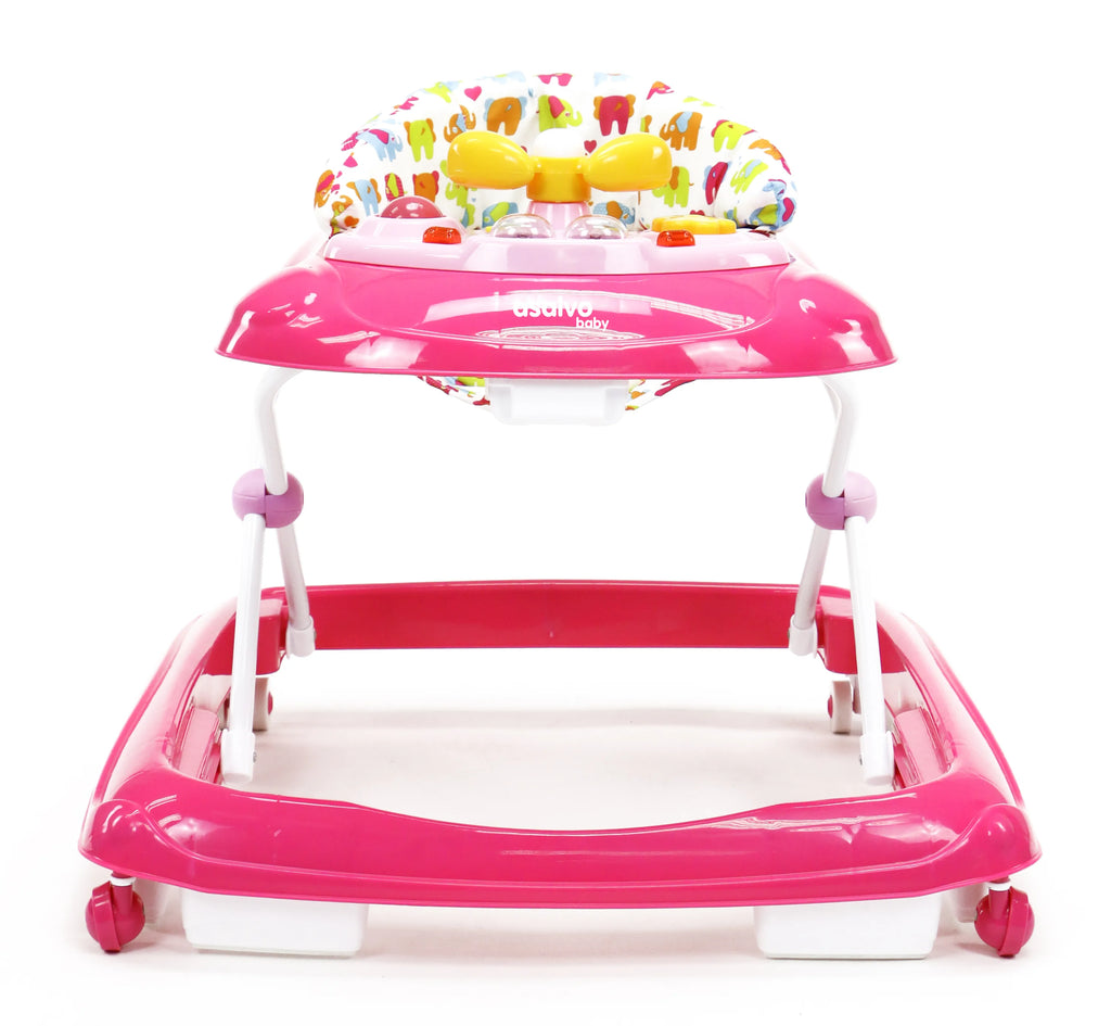 Gåstolen er justerbar i 3 højder, så den kan vokse med barnet.