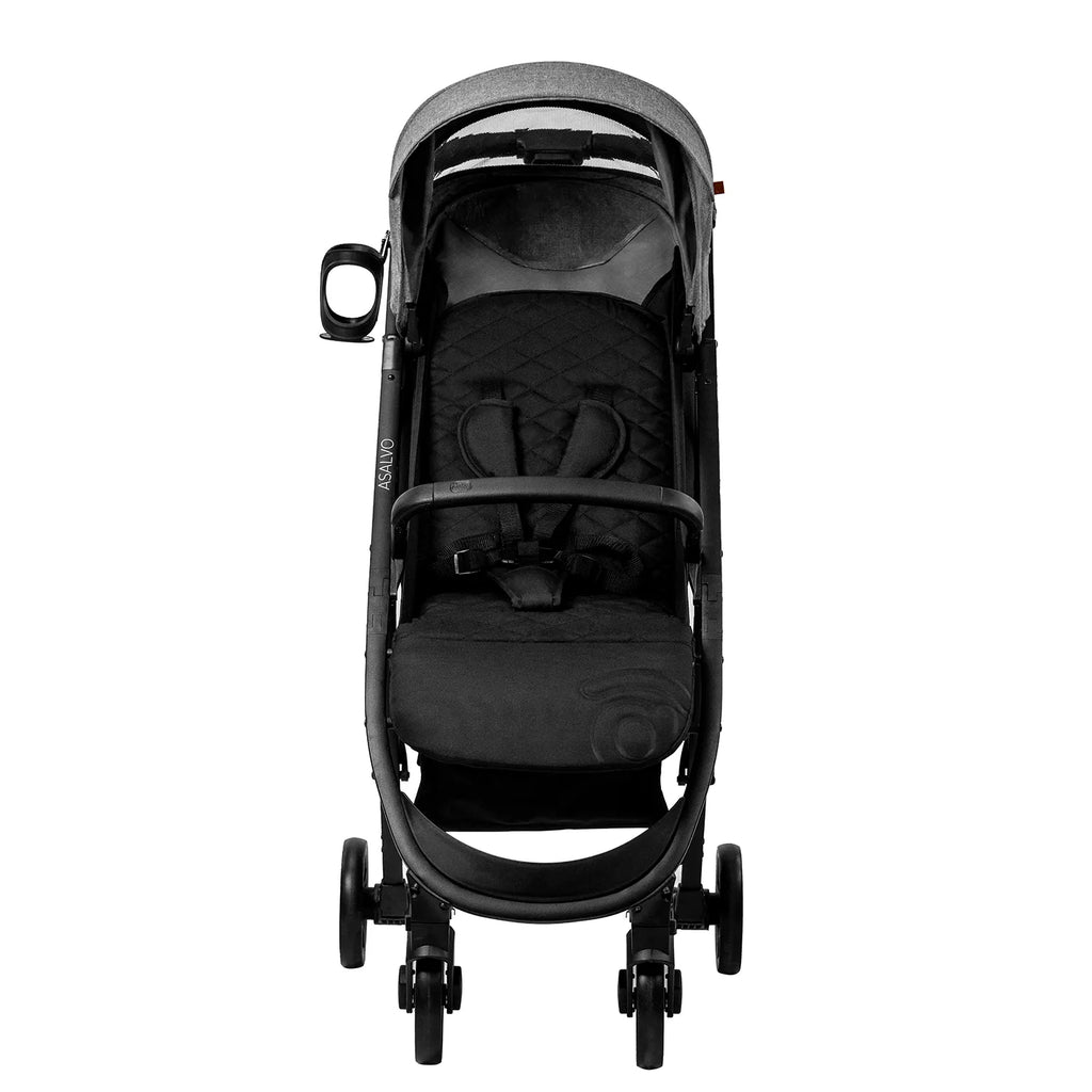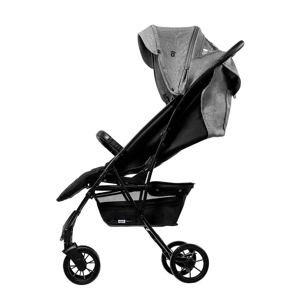 Klapvogn med et anti-ridse aluminiumsstel og ryglæn der kan indstilles i tre positioner, og lægges helt ned.