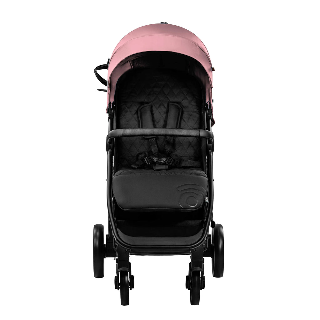 Vognen har bagbremse, 5-punktssele med skulderpuder, selebeskyttere, sikkerhedslås og et lukket håndtag.