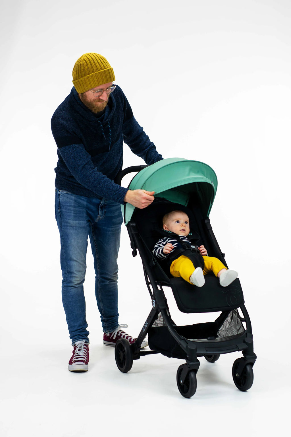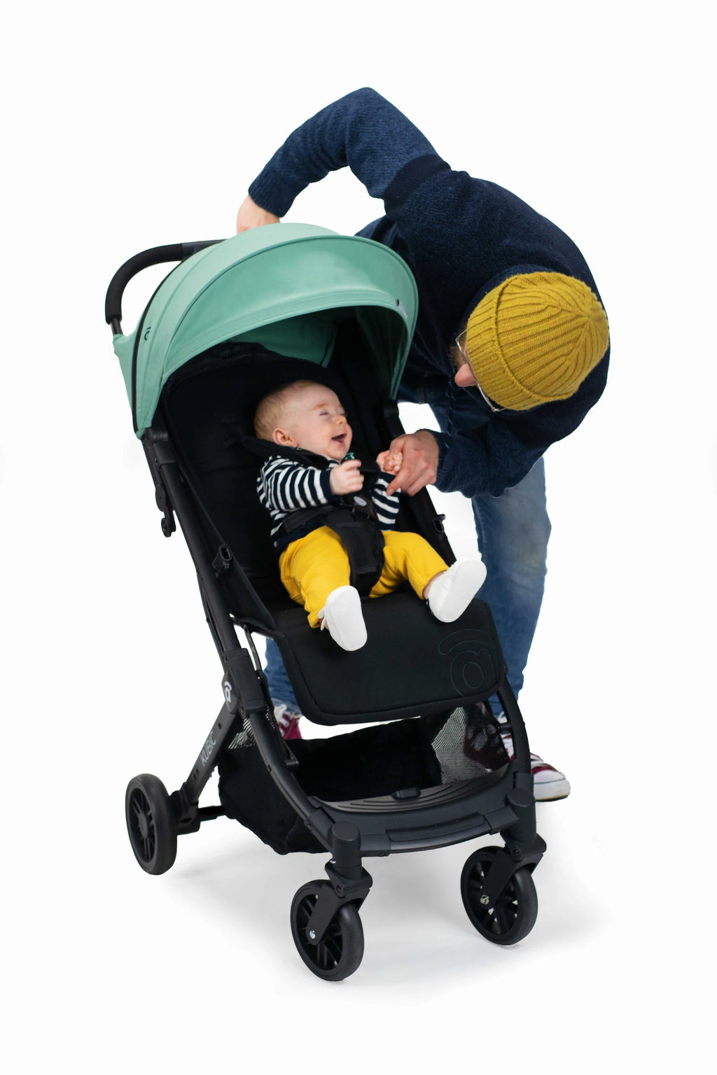 Asalvo Kubic, grøn er en let klapvogn med højkvalitets stretch tekstil, og stort og behageligt polstret sæde.