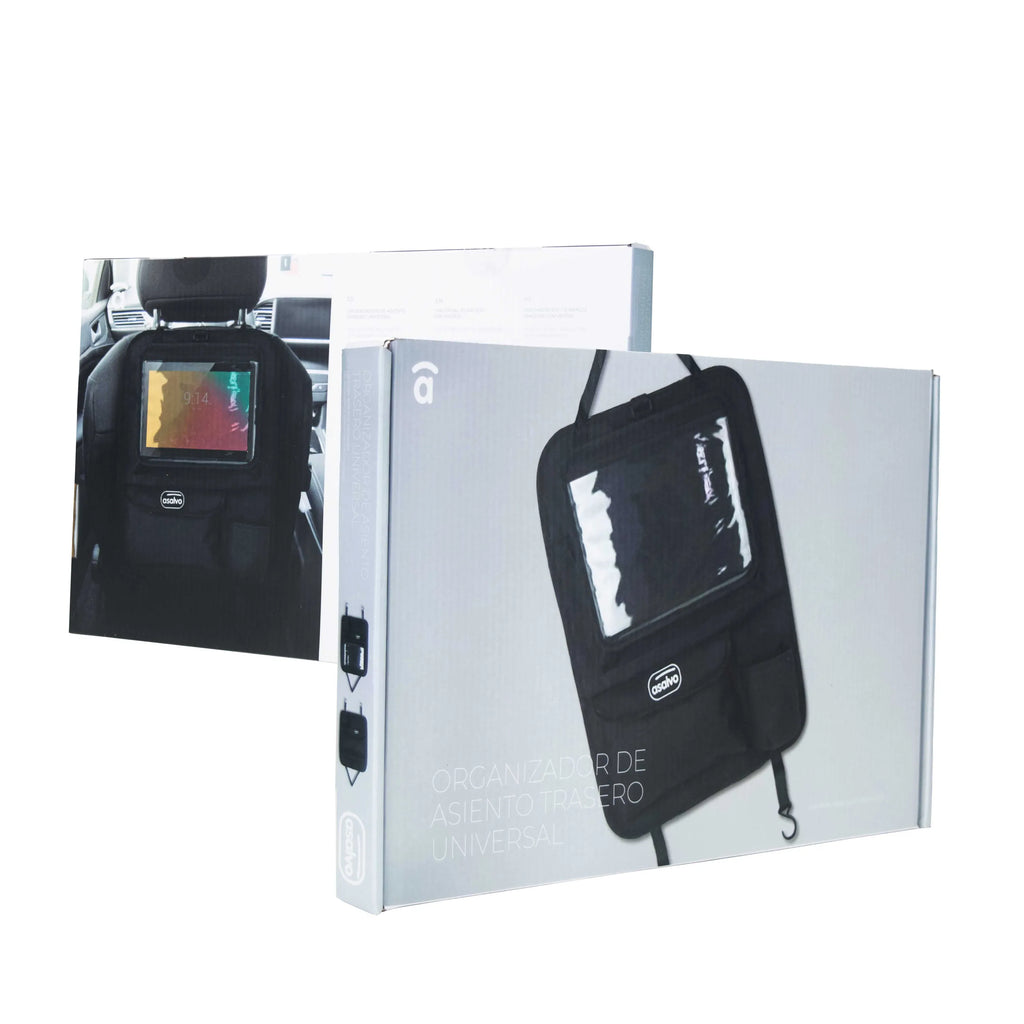 Opbevaringslomme/seat organizer med Integreret og aftagelig tabletholder til bil bagsædet.