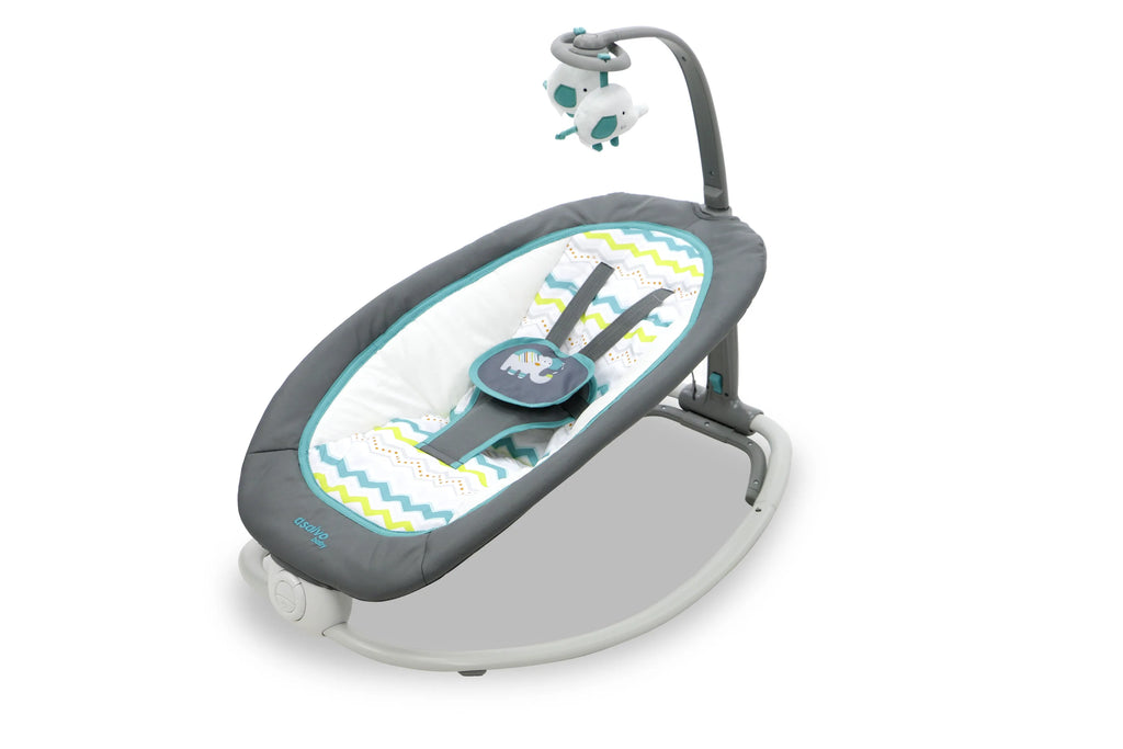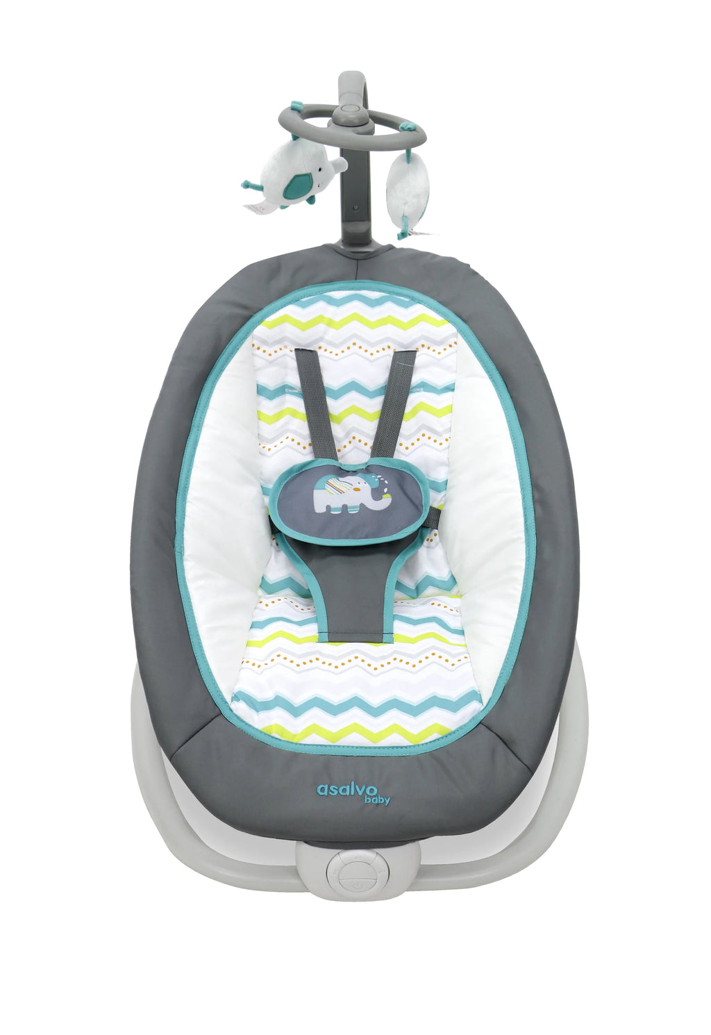 Asalvo Skråstol Fold Elefant, Aqua er en sikker og stimulerende stol for baby.