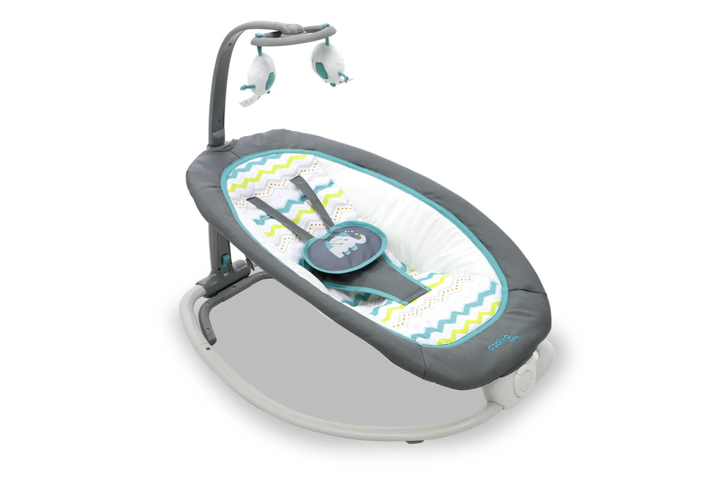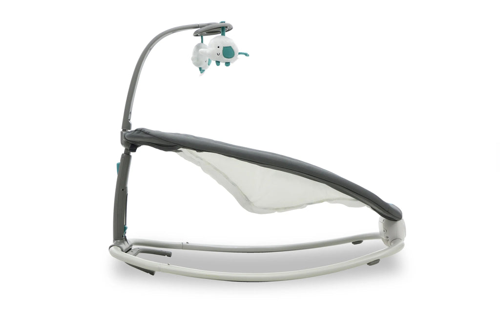 Den er kompakt, nem at transportere, og indeholder beroligende musik og vibrationer som beroliger baby.