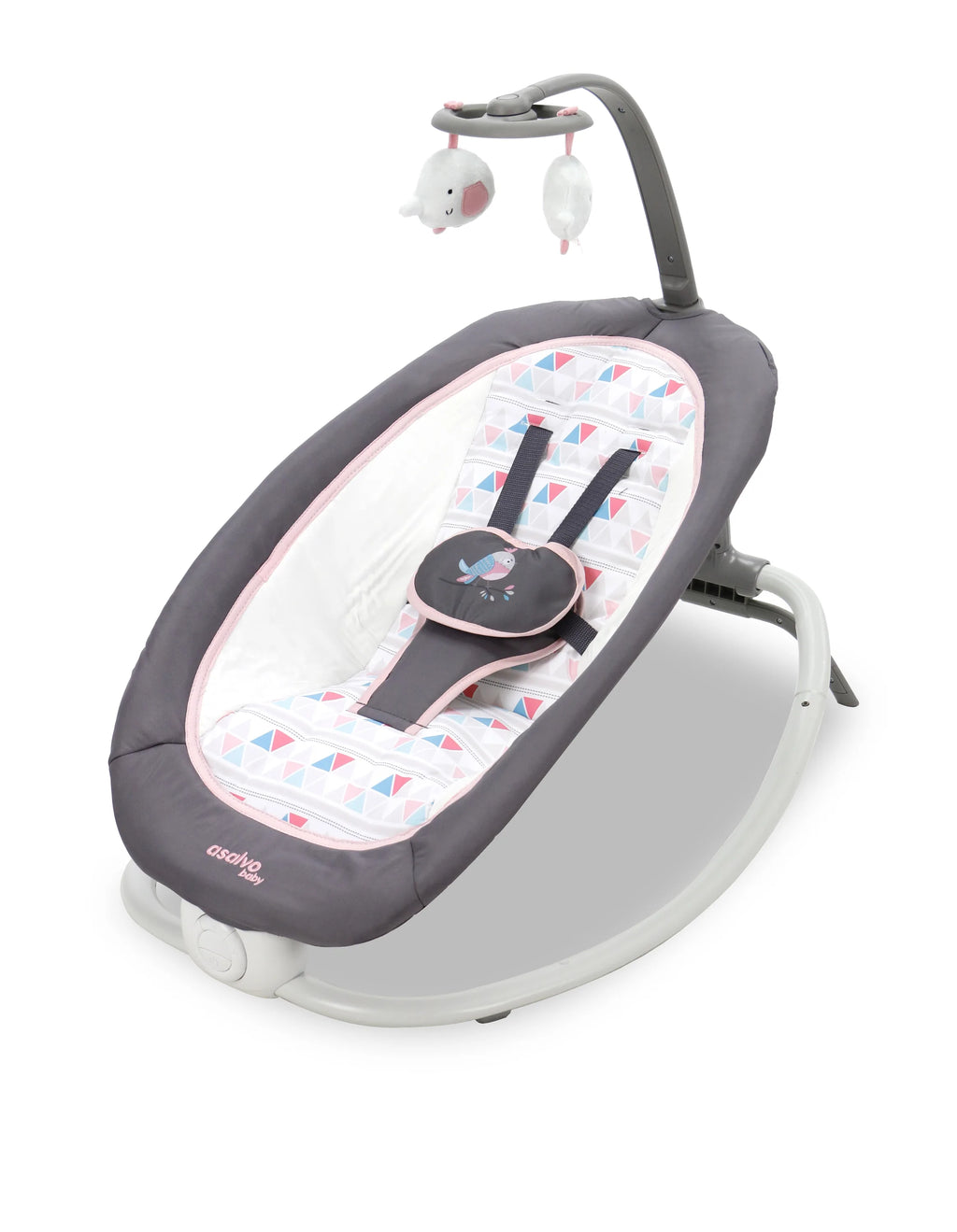 Asalvo Skråstol Fold Fugle, Rosa er en sikker og stimulerende stol for baby.