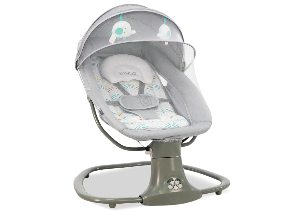 Inklusiv aktivitetsbøjle med to stykker legetøj og skærm med myggenet.