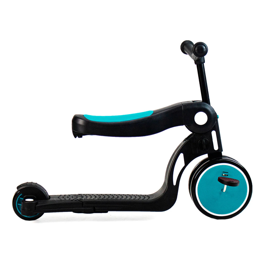 Trike løbecykel, trehjulet cykel og løbehjul, Ride and Roll, med 5 konfigurationsmuligheder, Aqua.