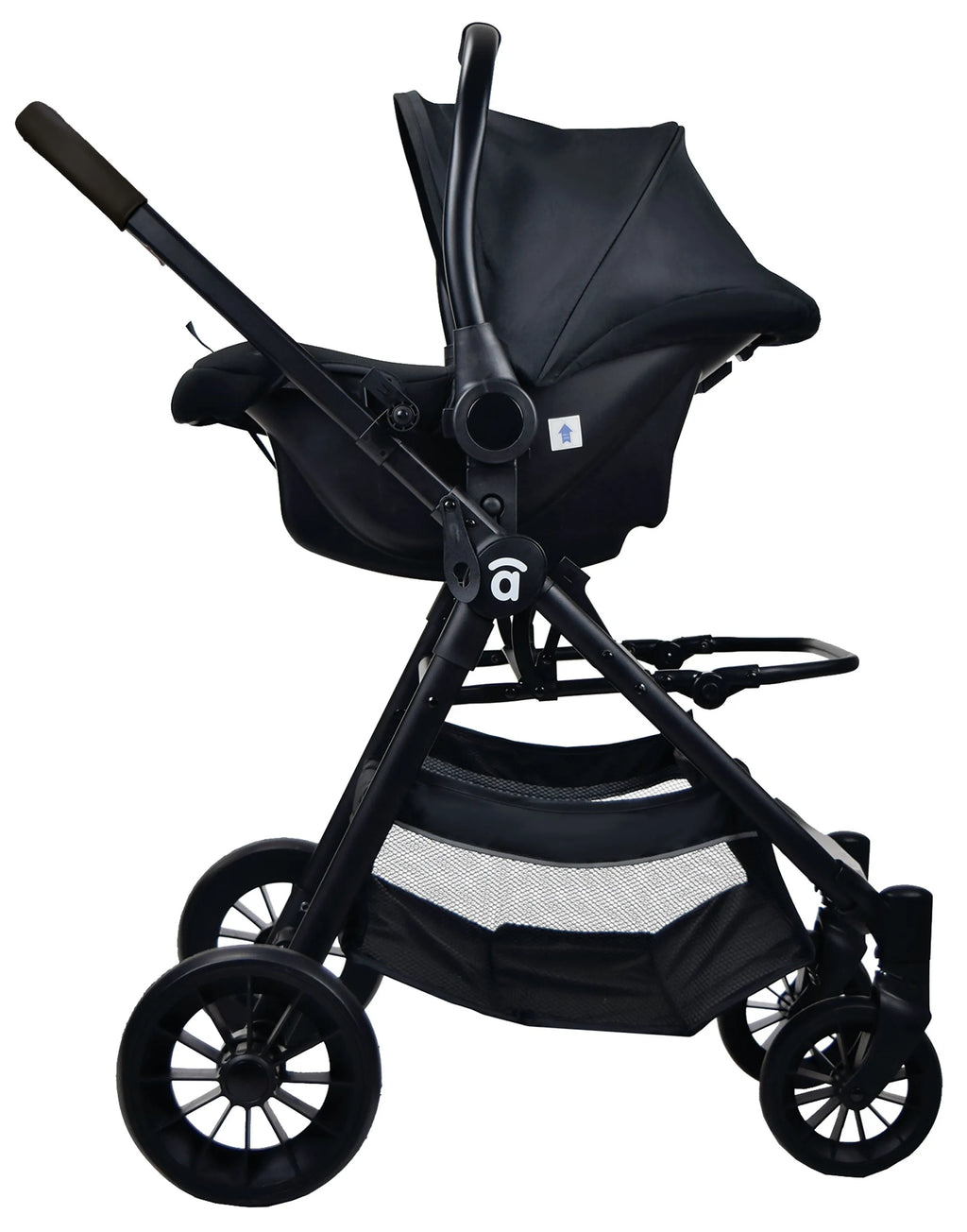 Sæt med klapvogn, lift med 3 cm tyk madras, autostol gruppe 0+ med bærehåndtag.