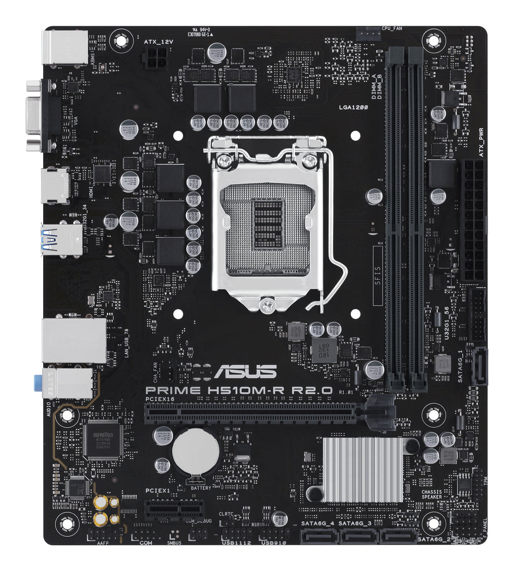 ASUS Prime H510M-R R2.0. Processorproducent: Intel, Processor sokkel: LGA 1200 (Socket H5), Kompatibel processor serie: Intel® Celeron®, Intel® Core™ i3, Intel® Core™ i5, Intel® Core™ i7, Intel® Core™ i9,.... Understøttede hukommelsestyper: DDR4-SDRAM, Maksimal intern hukommelse: 64 GB, Hukommelses slots type: DIMM. Understøttede lagerdrev brugerflader: SATA III, Understøttet datalagringsdrev typer: HDD & SSD. Ethernet-grænsefladetype: Hurtigt ethernet, Gigabit Ethernet. Komponent til: PC, Motherboard form faktor: micro ATX, Bundkort chipset familie: Intel