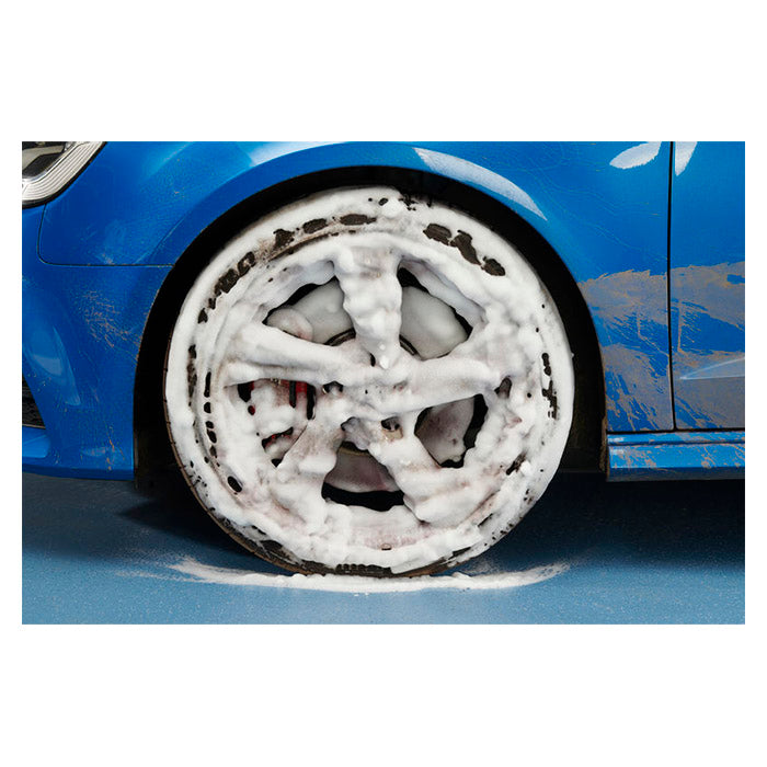 Skummet skifter farve, når det er klar til at blive skyllet af, hvilket sikrer optimal rengøring. Med en pH-neutral formel er produktet sikkert at bruge på alle typer fælge, men det er ikke egnet til motorcykler.