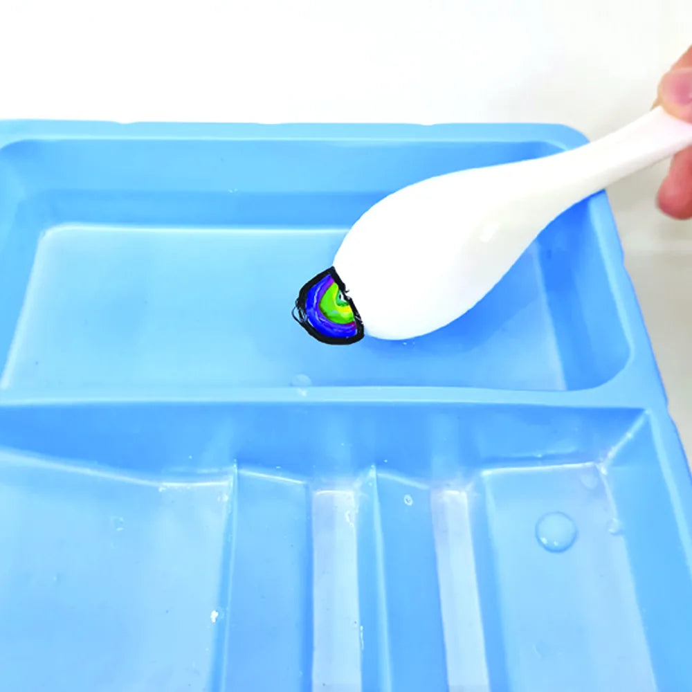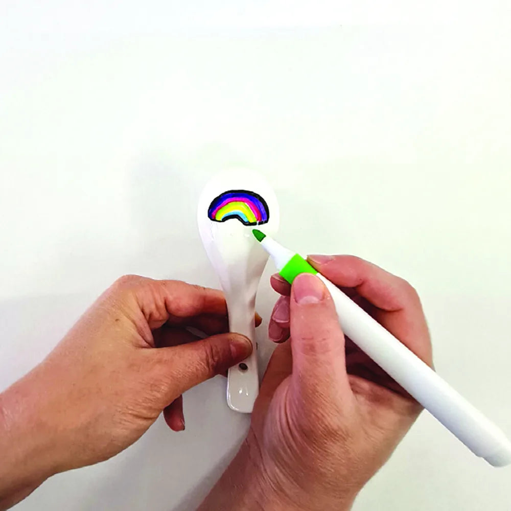 Tegn med magiske tusser på den keramiske ske. Når skeen efterfølgende dyppes i vand, løsnes det tegnede og den smukke figur flyder!