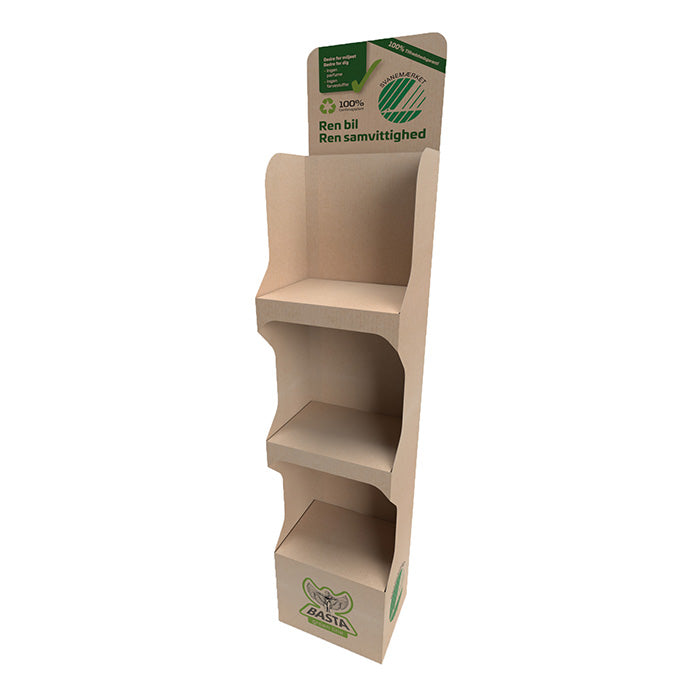 Opdag det stilfulde Basta svanemærket gulvdisplay, der er designet til at præsentere dine produkter på en attraktiv måde. Dette display har plads til 36 stk. Basta svanemærket produkter, hvilket gør det ideelt til butikker og messer.