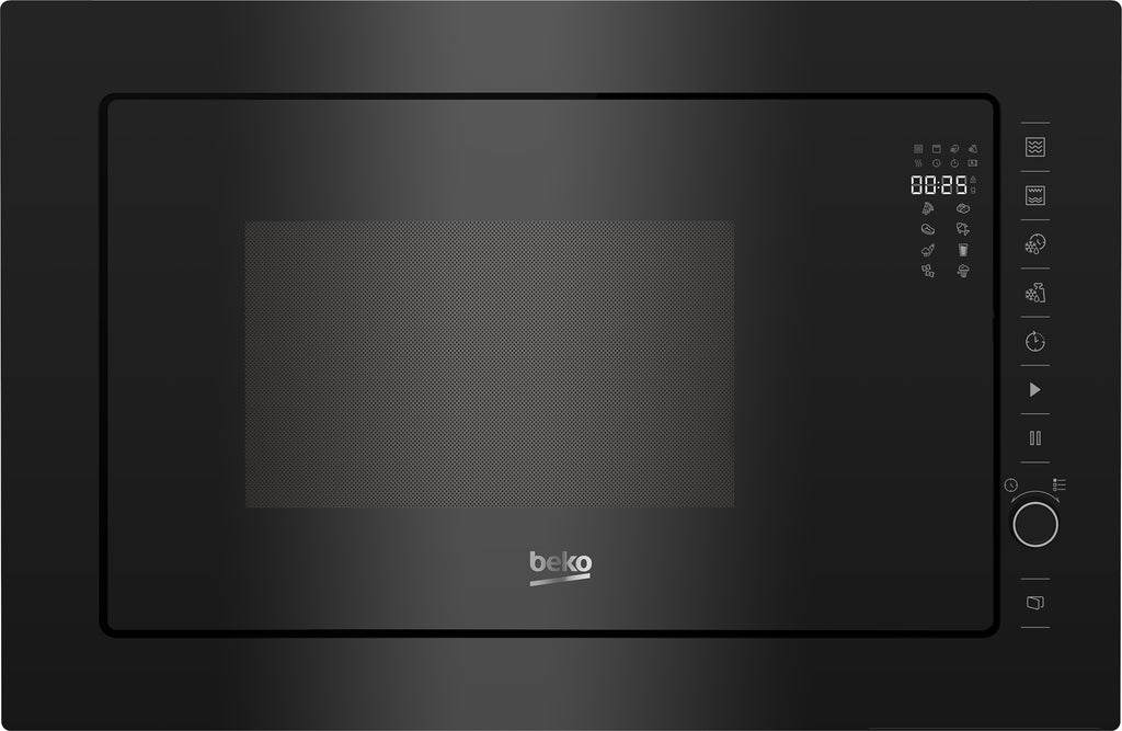 Beko BMGB 25333 BG. Placering af apparat: Indbygget, Produkttype: Grill mikroovn, Indvendig kapacitet: 25 L, Mikrobølgeeffekt: 900 W, Indbygget skærm, Kontroltype: Dreje, Berøring, Produktfarve: Sort