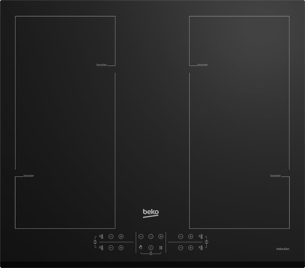 Beko HII64206F2MT. Produktfarve: Sort, Placering af apparat: Indbygget, Ovnbredde størrelse: 60 cm. Almindelige kogeplade / madlavningsområde: 2000 W, Boost regulær tilberednings-/kogezone: 2300 W. Kontroltype: Berøring, Kontrolposition: Front. Tilsluttet belastning (elektrisk): 7200 W, Vekselstrømsindgangsfrekvens: 50 Hz. Bredde: 580 mm, Dybde: 510 mm, Højde: 55 mm