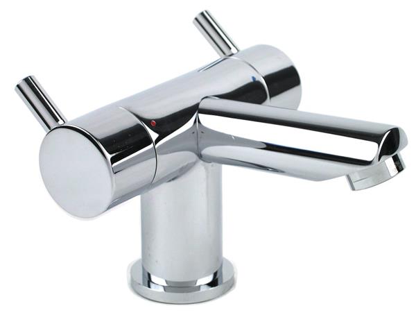 Togrebsarmatur til håndvask, med keramiske ventiloverdele. Integrerede messingsæder i armaturkrop. Med pindegreb i metal, pindlængde 25 mm med mulighed for udskiftning til længere pinde. Til montering med bordring.