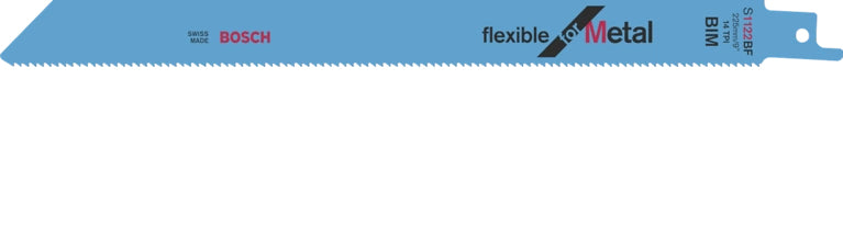 Bosch S 1122 BF. Produkttype: Saber savklinge, Velegnet til materialer: Metal, Materiale, kniv: Bimetal. Arbejdslængde: 17,5 cm, Afstand mellem bladtænder: 2 mm, Skæringstykkelse (maks): 8 mm. Samlet længde: 22,5 cm. Antal pr. pakke: 2 stk, Pakketype: Pap