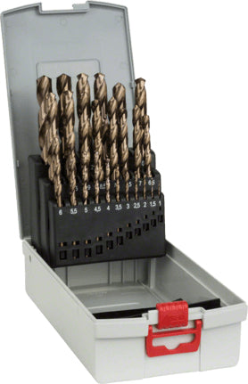 Bosch 2 608 587 018. Normal brug: Boremaskine, Bortype: Boresæt, Velegnet til materialer: Legeret stål, Støbejern, Ikke-legeret stål, Rustfrit stål. Antal borebits: 25 stk, Borebitsæt størrelser: 1,0 / 1,5 / 2,0 / 2,5 / 3,0 / 3,5 / 4,0 / 4,5 / 5,0 / 5,5 / 6,0 / 6,5 / 7,0 / 7,5 / 8,0 / 8,5 /...