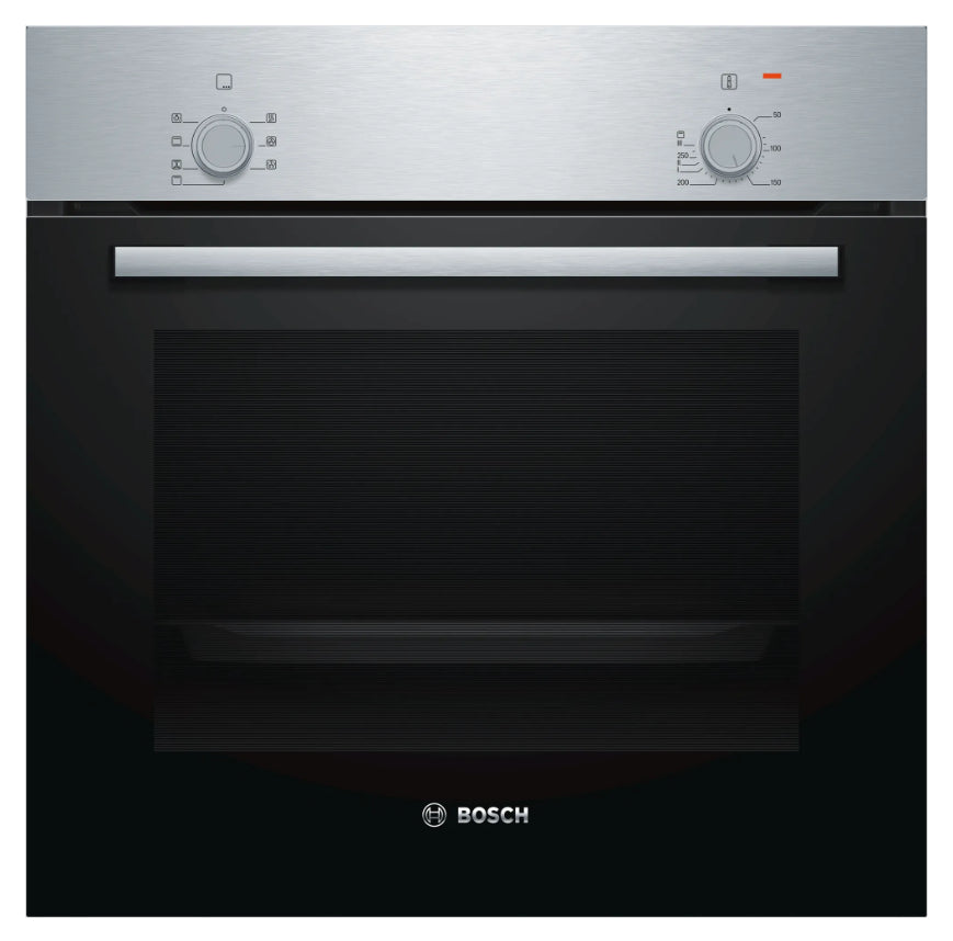 Bosch Serie 2 HBF010BR1S. Ovn - størrelse: Medium, Ovntype: Elektrisk ovn, Samlet indvendig ovn kapacitet: 66 L. Placering af apparat: Indbygget, Produktfarve: Rustfrit stål, Kontroltype: Dreje. Energiforbrug (konventionel): 0,98 kWh, Energiforbrug (tvungen konvektion): 0,79 kWh, Energieffektivitetsskala: A+++ til D. Lampe type: Halogen. Installationsrum bredde: 56,8 cm, Installationsrum dybde: 55 cm, Installationsrum højde: 59,7 cm