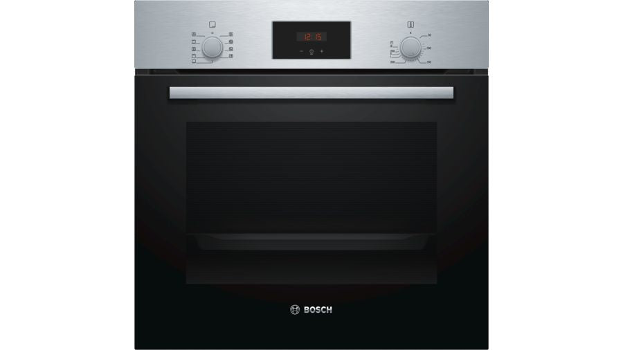 Bosch Serie 2 HBF114ES0. Ovn - størrelse: Medium, Ovntype: Elektrisk ovn, Samlet indvendig ovn kapacitet: 66 L. Placering af apparat: Indbygget, Produktfarve: Rustfrit stål, Kontroltype: Dreje, Berøring. Energiforbrug (konventionel): 0,98 kWh, Energiforbrug (tvungen konvektion): 0,79 kWh, Tilsluttet belastning: 3300 W. Lampe type: Halogen. Installationsrum bredde: 56,8 cm, Installationsrum dybde: 55 cm, Installationsrum højde: 59,5 cm