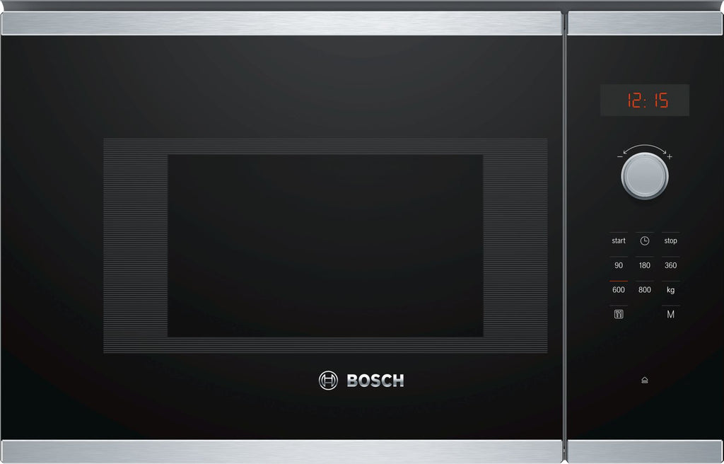 Bosch Serie 4 BFL523MS0. Placering af apparat: Indbygget, Produkttype: Solo mikroovn, Indvendig kapacitet: 20 L, Mikrobølgeeffekt: 800 W, Indbygget skærm, Skærmtype: LED, Kontroltype: Knapper, Dreje, Produktfarve: Sort, Rustfrit stål