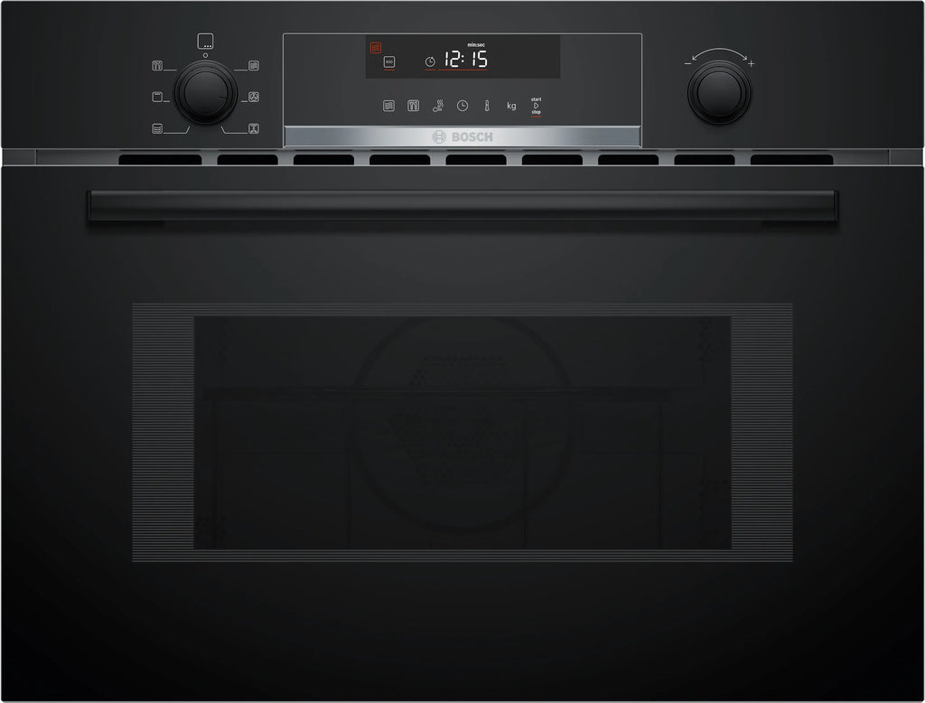 Bosch Serie 6 CMA585GB1. Placering af apparat: Indbygget, Produkttype: Kombination mikroovn, Indvendig kapacitet: 44 L, Mikrobølgeeffekt: 900 W, Indbygget skærm, Skærmtype: LCD, Kontroltype: Dreje, Berøring, Produktfarve: Sort
