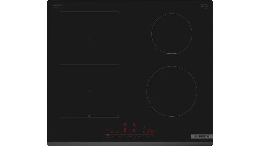 Bosch Serie 6 PVS631HC1E. Produktfarve: Sort, Placering af apparat: Indbygget, Ovnbredde størrelse: 59.2 cm. Kontroltype: Berøring, Kontrolposition: Front. Tilsluttet belastning (elektrisk): 6900 W, Vekselstrømsindgangsspænding: 220 - 240 V, Vekselstrømsindgangsfrekvens: 50 - 60 Hz. Bosch-teknologier (madlavning): Home Connect. Bredde: 592 mm, Dybde: 522 mm, Højde: 51 mm