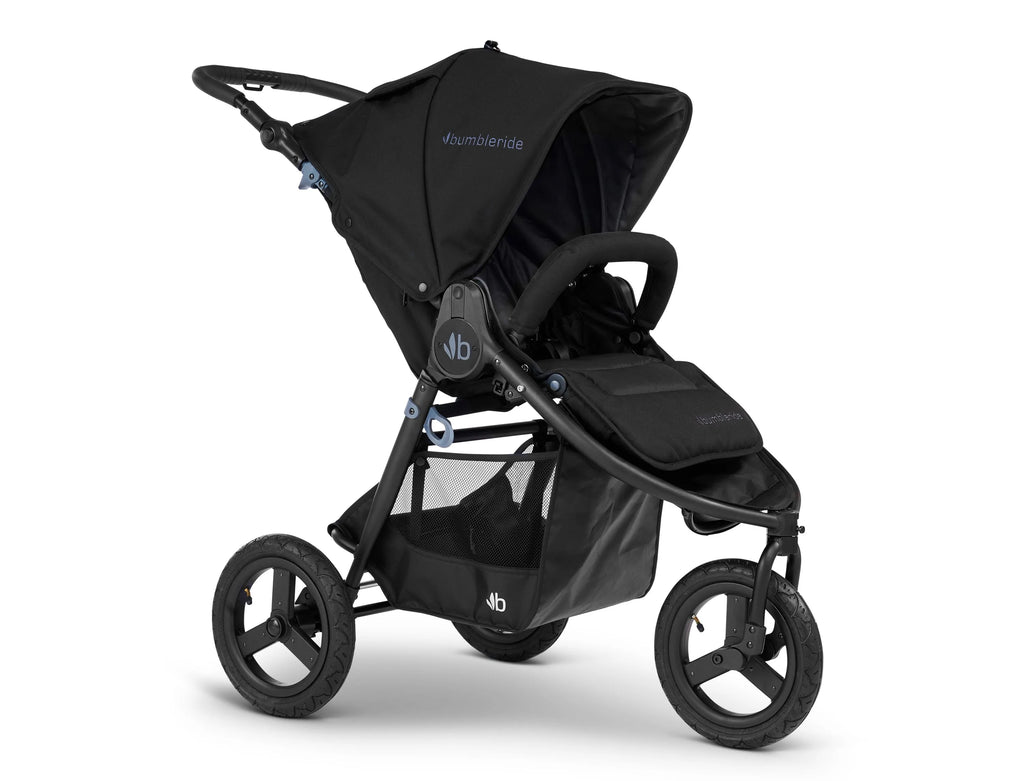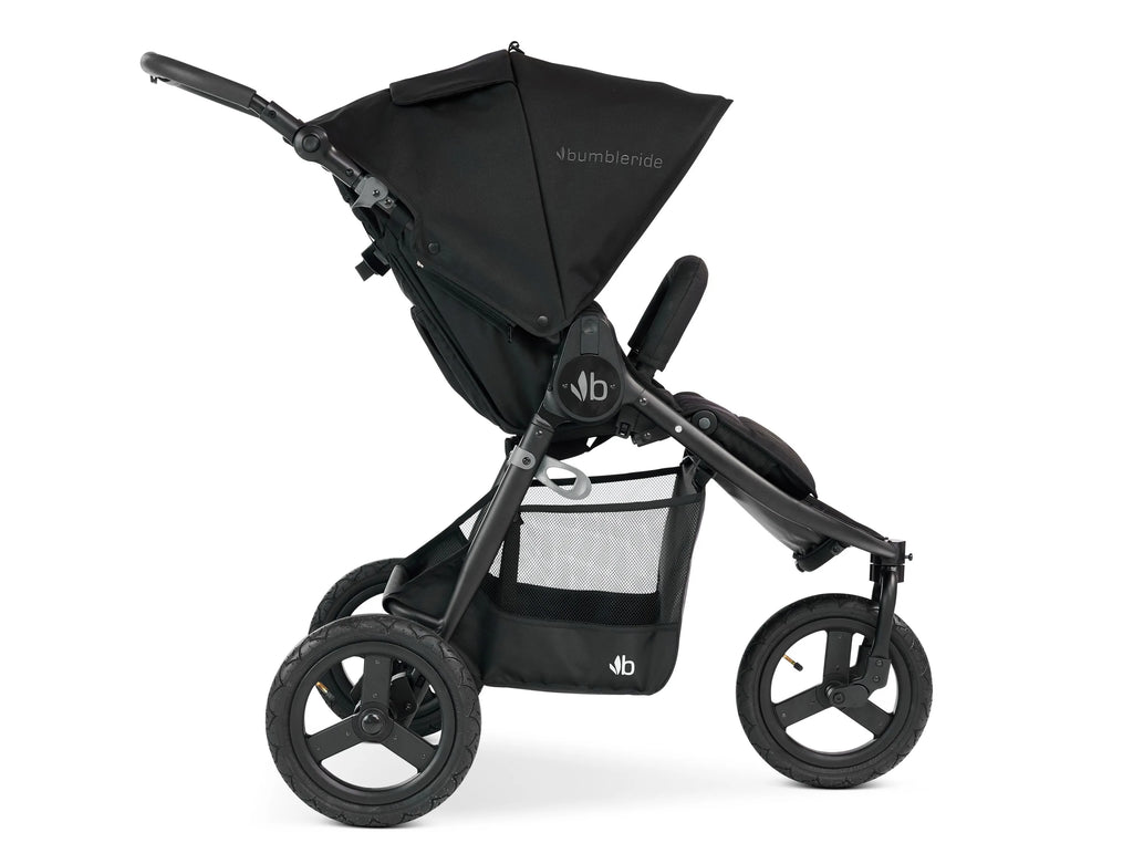 Bumbleride Indie har indstillelig højdejusterbar styr, fodstøtte, håndtag og ryglæn, som kan lægges helt ned i vandret position. Vognen har ialt 5 lommer til opbevaring.