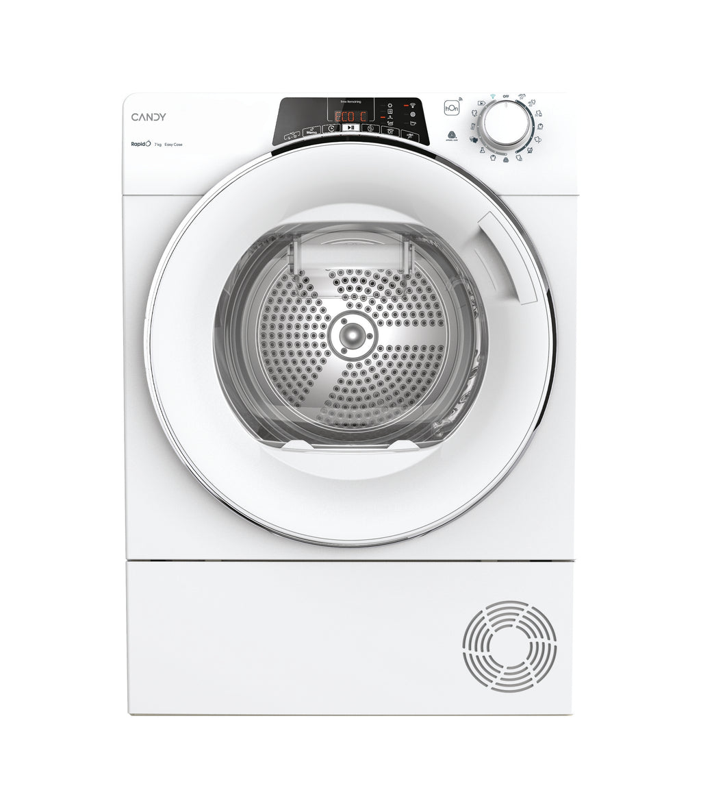 Candy RapidÓ RO4H7A1TCEXS. Placering af apparat: Fritstående, Ilægningstype: Front-læsning, Tørresystem: Varmepumpe. Tromlekapacitet: 7 kg, Condensation efficiency class (old): B, Tørreprogrammer: Bluse/trøje, Bomuld, Daglige, Dark clothes, Eco, Opfriske, Strygetørt, Jeans/denim, Hurtig,.... Forsinket start (maks.): 24 t, Kontrol apps understøttes: hOn. Energiforbrug: 2,25 kWh, Årligt energiforbrug: 269 kWh, Energieffektivitetsskala: A+++ til D. Dybde: 486 mm, Bredde: 596 mm, Højde: 850 mm