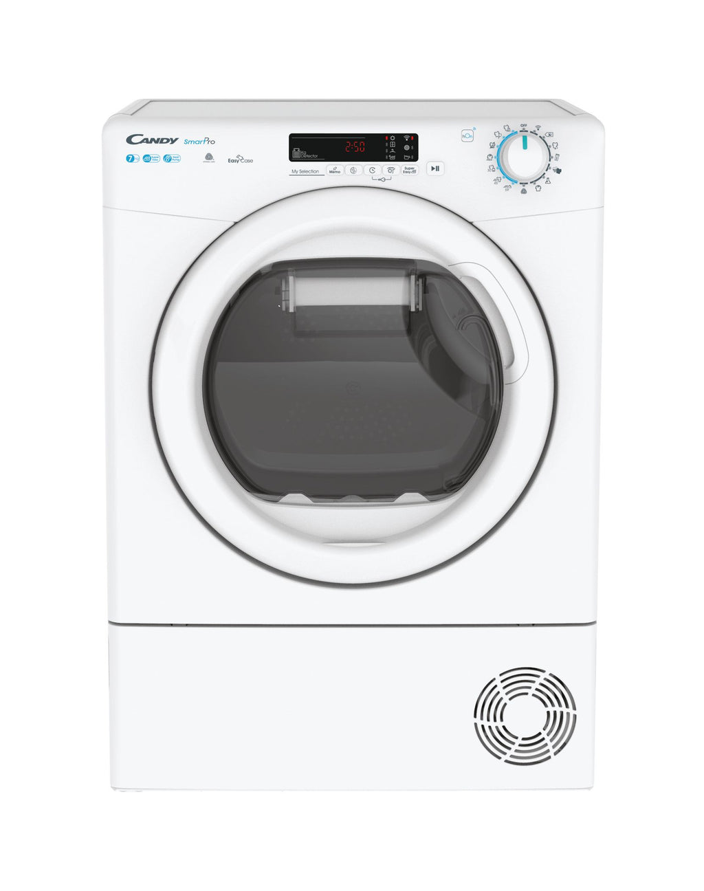 Candy Smart Pro CSO4H7A1DE-S. Placering af apparat: Fritstående, Ilægningstype: Front-læsning, Tørresystem: Varmepumpe. Tromlekapacitet: 7 kg, Condensation efficiency class (old): B, Tørreprogrammer: Bluse/trøje, Bomuld, Daglige, Eco, Opfriske, Strygetørt, Jeans/denim, Mix, Sport, Syntetisk,.... Forsinket start (maks.): 24 t, Kontrol apps understøttes: hOn. Energiforbrug: 2,25 kWh, Årligt energiforbrug: 269 kWh, Energieffektivitetsskala: A+++ til D. Dybde: 484 mm, Bredde: 596 mm, Højde: 850 mm