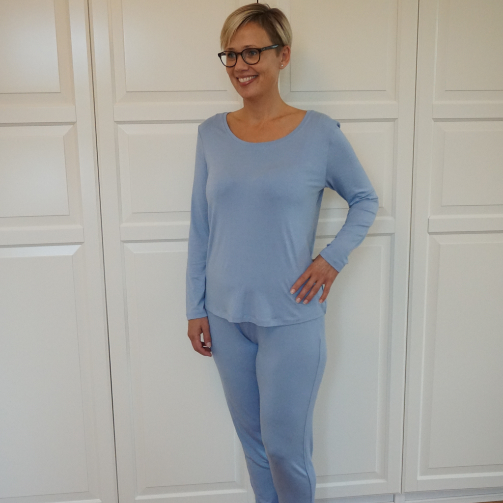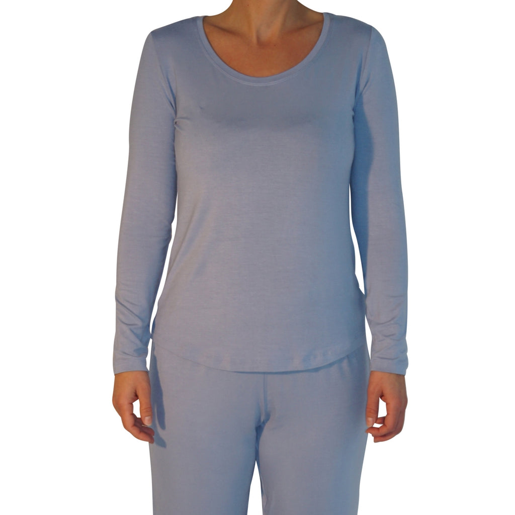 Dame natbluse med lange ærmer - Lyseblå