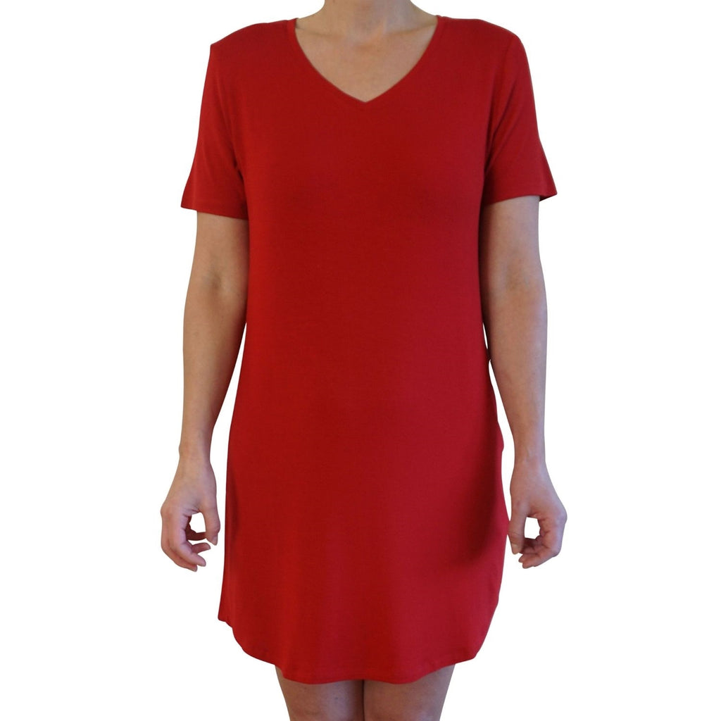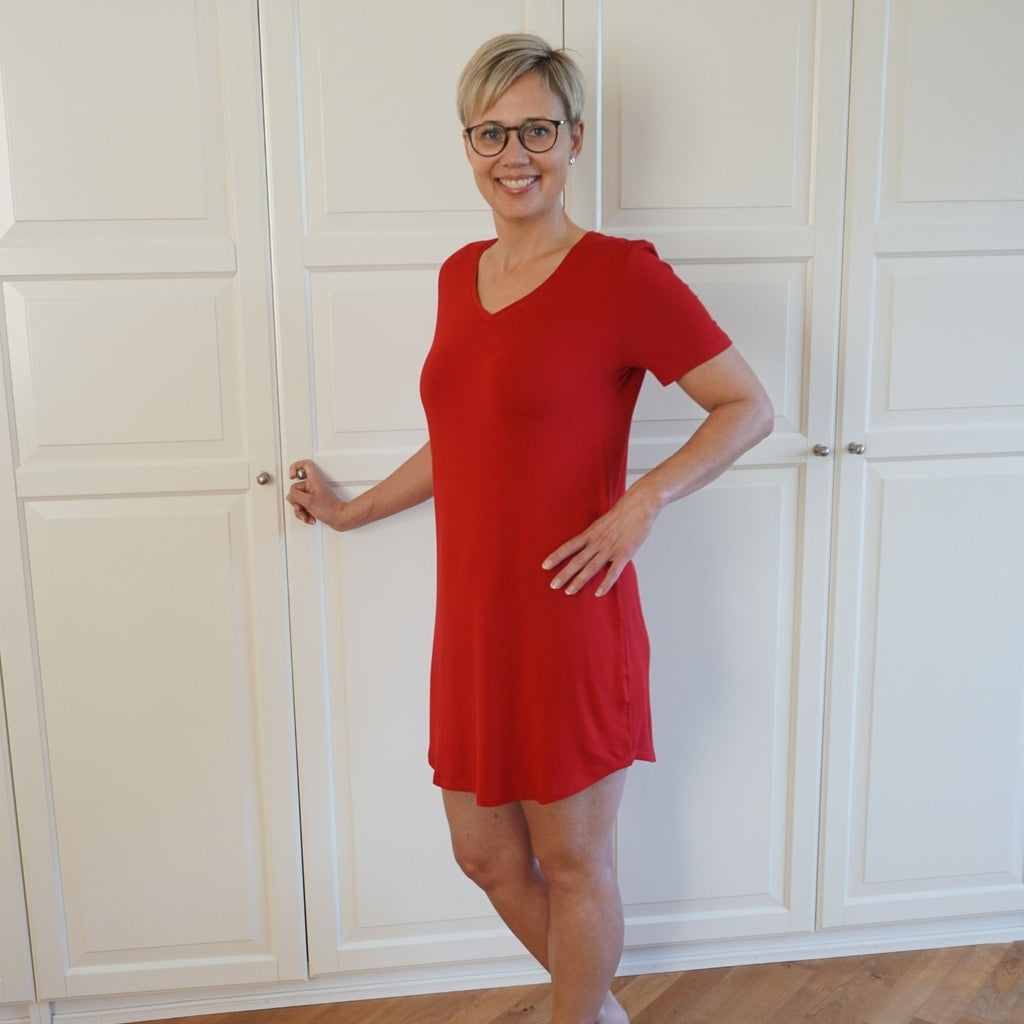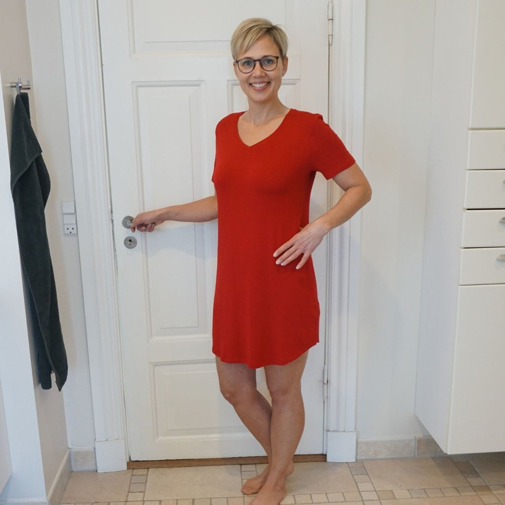 Dame natkjole kort ærme - Rød