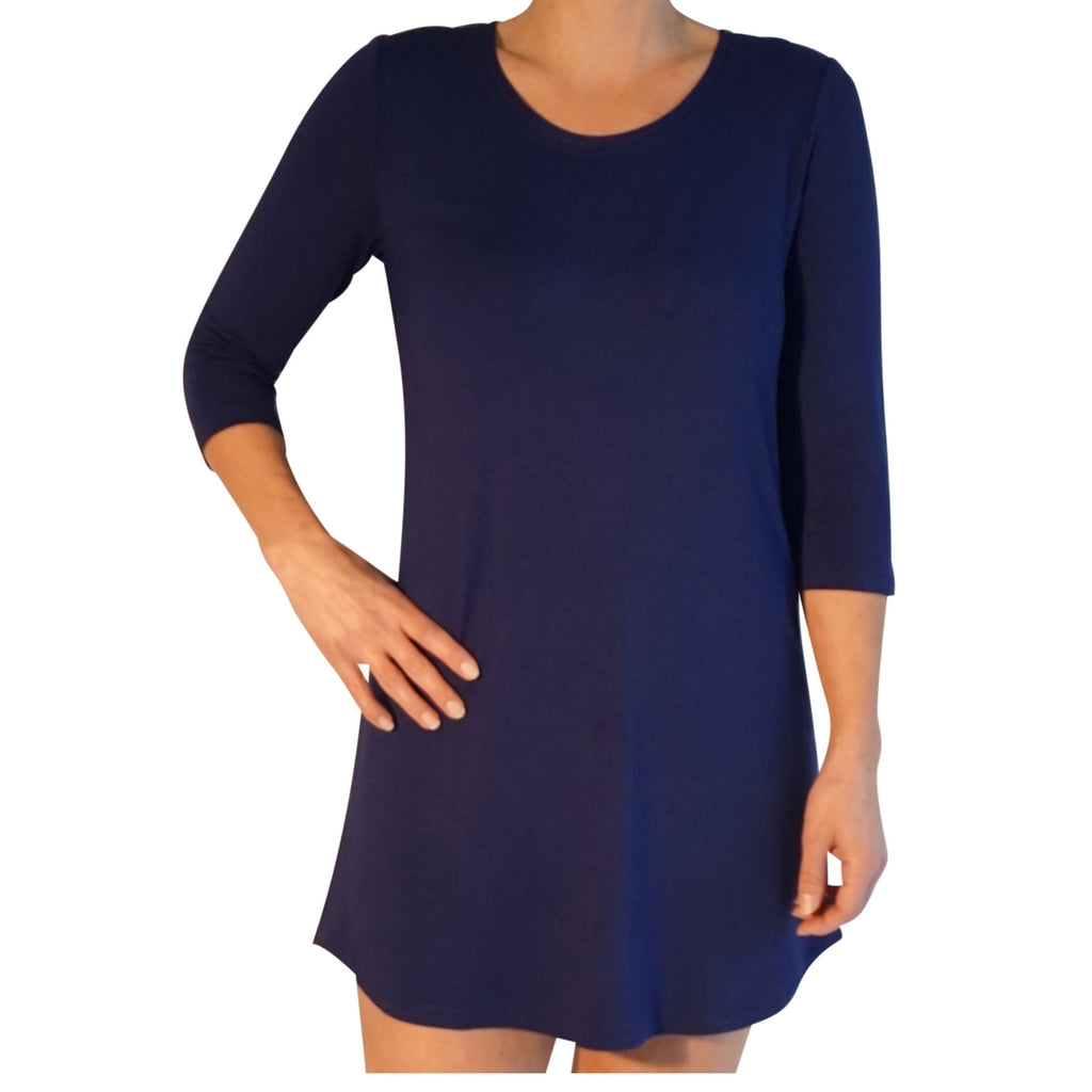 Dame natkjole med 3/4 ærme - Mørkeblå