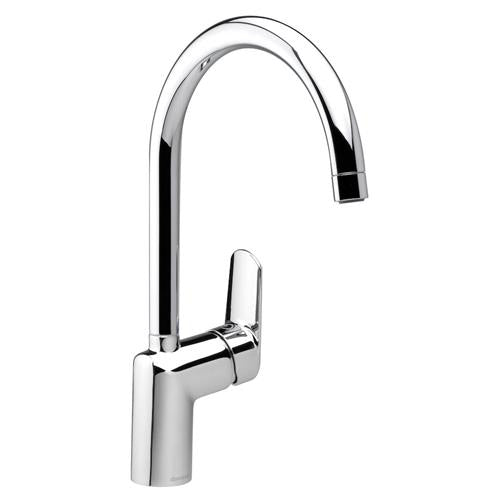 1-grebsarmatur med svingtud. Armaturet har en Keramisk kartusche med Anti-skoldnining, Kold Start og Eco-Save vandsparefunktion. Rub Clean perlator der gør det let at fjerne kalk. Max 8 liter/min. Uden bundventil