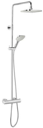 Brusersystem inklusiv Thermixa 600 termostat. Med anti-skoldning og Eco-Klik vandsparefunktion. Ø250mm hovedbruser og håndbruser med 3 indstillinger. Rub Clean på begge brusere, der gør det let at fjerne kalk. Integreret omskifter