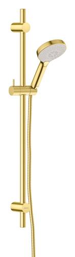 Silhouet Flex Brusesæt. Håndbruser Ø110 mm med 3 indstillingsmuligheder. Og Rub Clean der gør det nemt at fjerne kalk. 1500 mm metal slange med anti-twist. Justerbar brusestang i både top og bund. Inkl. glider. Børstet messing (PVD). Den særlige PVD-belægning giver en hårdere og endnu mere robust overflade, som er ekstremt modstandsdygtig overfor ridser, korrosion og misfarvning.