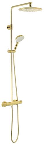 Termostatisk brusesystem med håndbruser og 250 mm hovedbruser i smalt design. Interegret omskifter i termostaten, der også har antiskoldning og Eco Save vandsparefunktion. 1750 mm bruseslange i metal
