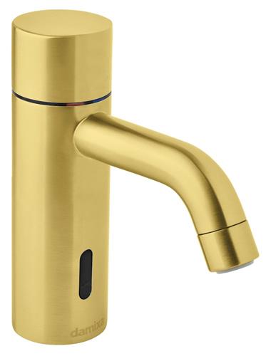 Silhouet Touchless håndvaskarmatur Small. Berøringsfrit armatur til privat brug med integreret regulering af både flow og temperatur. Keramisk kartusche med Eco-Save vandsparefunktion og Kold Start. Rub Clean perlator der gør det let at fjerne kalk. Forbrug: Max 6L/min. Børstet messing PVD