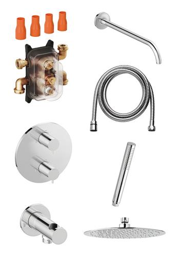 Pakke indeholdende: Indbygningstermostat indvendige dele, udvendige dele (767060000), lang brusearm, vinkel m/bruserholder, Silhouet hovedbruser, Tube håndbruser og 1500 mm metal bruserslange.