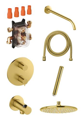 Pakke indeholdende: Indbygningstermostat indvendige dele, udvendige dele (767067900), lang brusearm, vinkel m/bruserholder, Silhouet hovedbruser, Tube håndbruser og 1500 mm metal bruserslange.