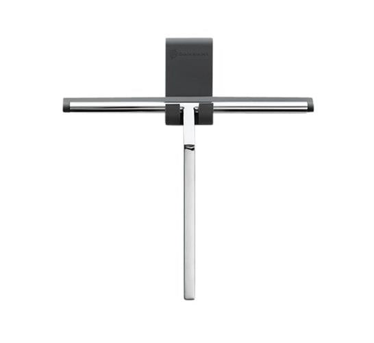Bruseskraber i krom med grå silikone krog. Skraberen kan hænges direkte på glassets kant.
