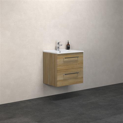 61 cm møbelpakke Mido 2 skuffer og Amber vask, varm eg