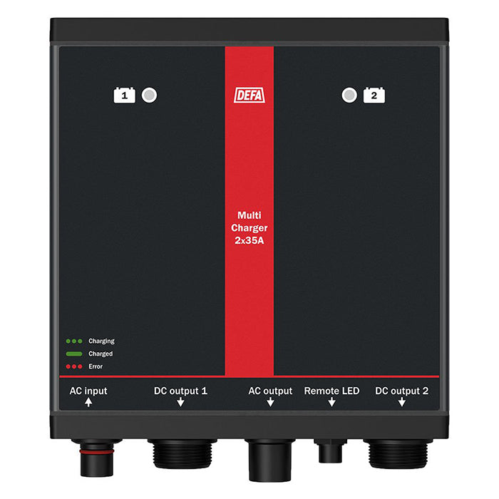 Oplev kraften i DEFA MultiCharger 2x35A, designet til effektiv opladning af store batterier op til 2x600Ah. Denne avancerede oplader sikrer maksimal ydeevne og forlænget levetid, selv under krævende forhold.